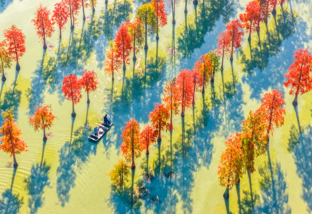 江苏省宿迁市泗洪县临淮镇巧用水杉林资源,同步推进林木生产与生态养殖,在守护绿水青山的同时,实现生态效益与经济效益双丰收,走出一条生态优先、绿色发展的乡村振兴之路。图为2025年11月19日,临淮镇生态养殖基地一片繁忙,养殖大户正为螃蟹投放饵料。 人民图片 张连华/摄
