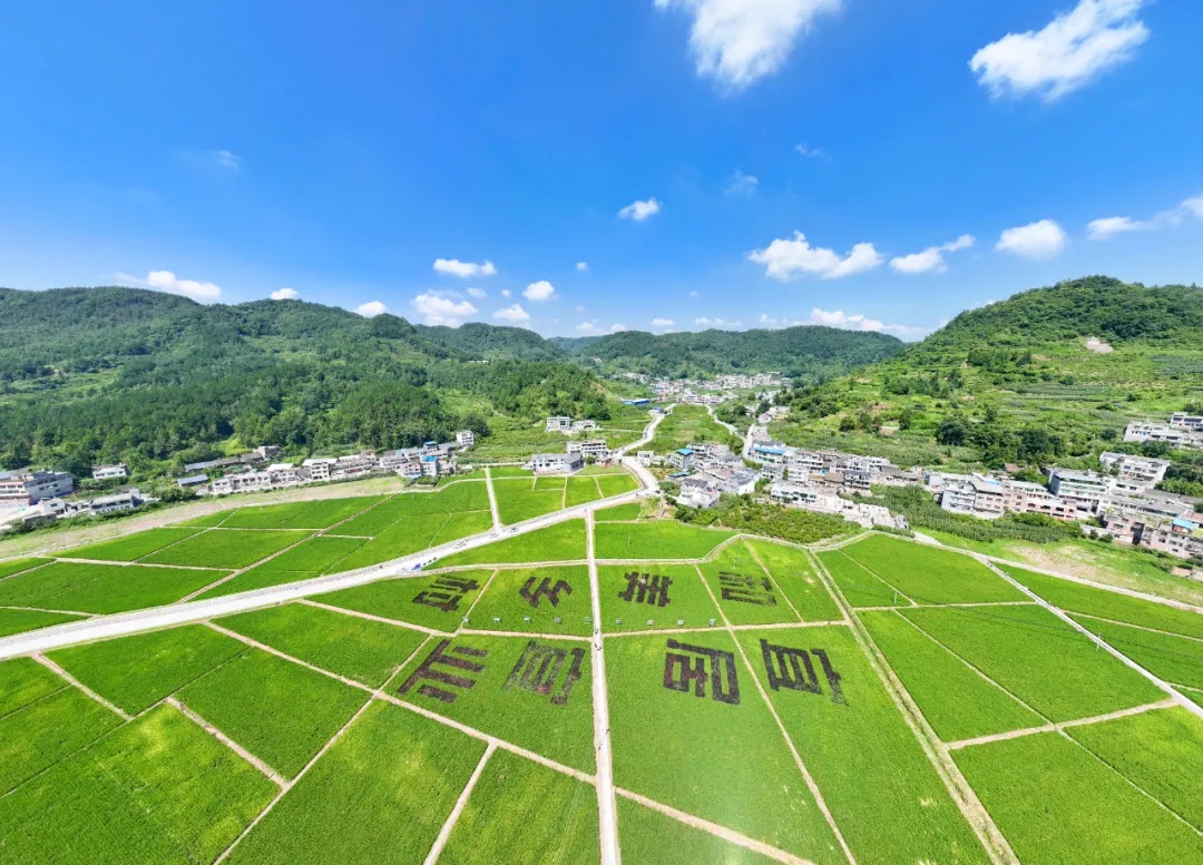图为2025年8月1日,贵州毕节七星关张家寨社区百亩稻田绿意浓,田园风光入画来。 七星关区融媒体中心供图