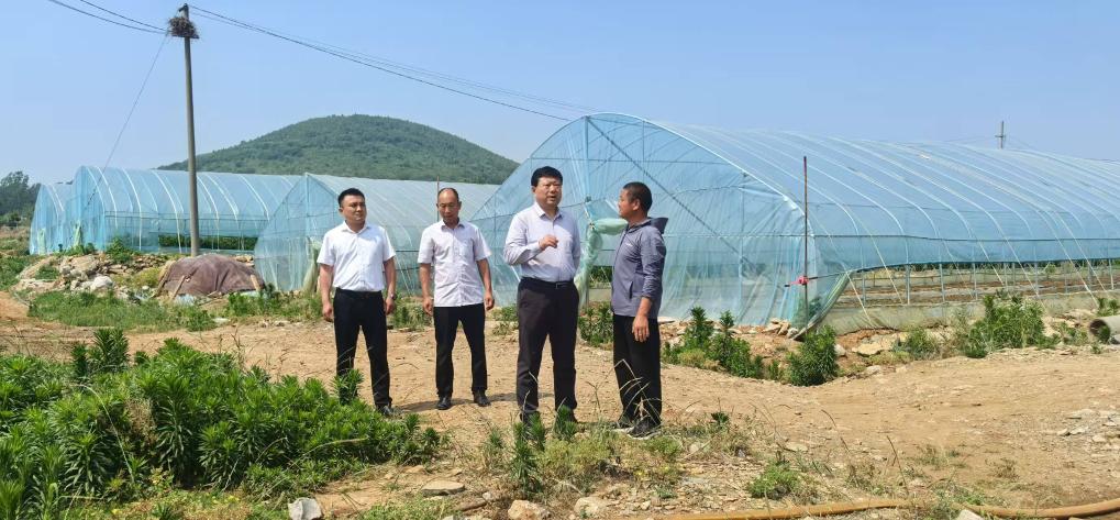 2025年6月,王传喜(右二)在兰陵县下村乡调研夏季防汛及农业生产情况。(受访者供图)
