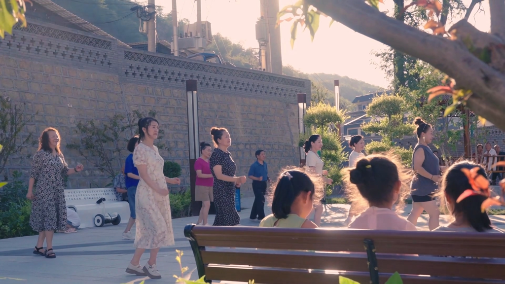 夏日的午后,村民们在延安市宝塔区南市街道高家原则村的小广场上拉家常、跳广场舞,一派惬意的生活景象。延安市宝塔区融媒体中心供图 刘旭/摄