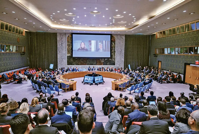 图为当地时间2026年1月5日,在位于纽约的联合国总部,联合国安理会就委内瑞拉局势举行紧急会议,多方代表谴责美方军事行动,强调应遵守包括《联合国宪章》在内的国际法。 新华社发 联合国供图 洛伊·费利佩/摄
