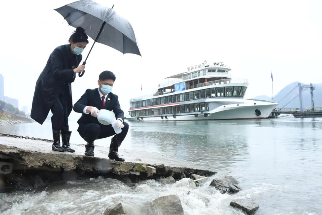 检察公益诉讼作为中国特色社会主义法治体系的重要实践载体,以司法力量守护公共利益、筑牢公正防线。图为2026年3月16日,湖北省宜昌市伍家岗区检察院收到志愿者反映的河道排污线索后,公益诉讼检察部门检察官赶赴现场,对江岸正在排放的污水进行多点位采样取证。 检察日报社供图