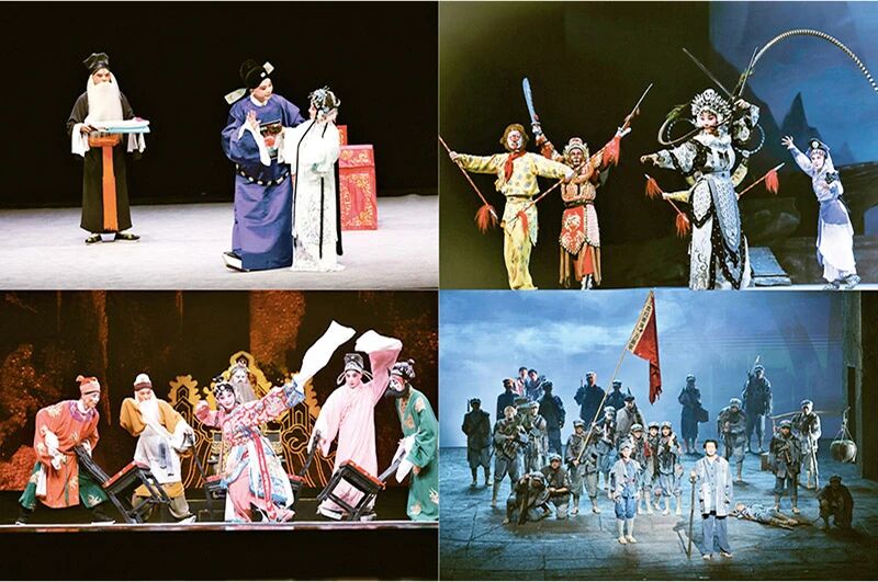 一花独放不是春,百花齐放春满园。2025年9月5日,第十九届中国戏剧节在浙江省杭州市开幕。本届戏剧节既有京剧、昆剧等受众广泛的大剧种,也包含山东柳子戏、湖南祁剧等承载地方文化基因的稀有剧种,不仅让观众领略到戏剧艺术的丰富性,更为濒危剧种提供了展示与传承的平台,为戏剧生态的多样性注入活力。图为第十九届中国戏剧节部分参演作品剧照:左上图为昆剧《世说新语》,右上图为婺剧《三打白骨精》,左下图为秦腔《再续红梅缘》,右下图为话剧《哈达铺的灯光》。 中国戏剧家协会供图