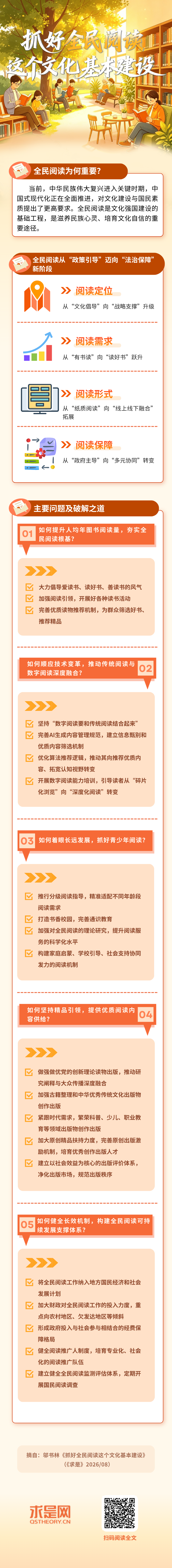 2026年第8期《求是》杂志刊发了邬书林的文章,对抓好全民阅读这个基本文化建设作出阐释。文章重点如下: